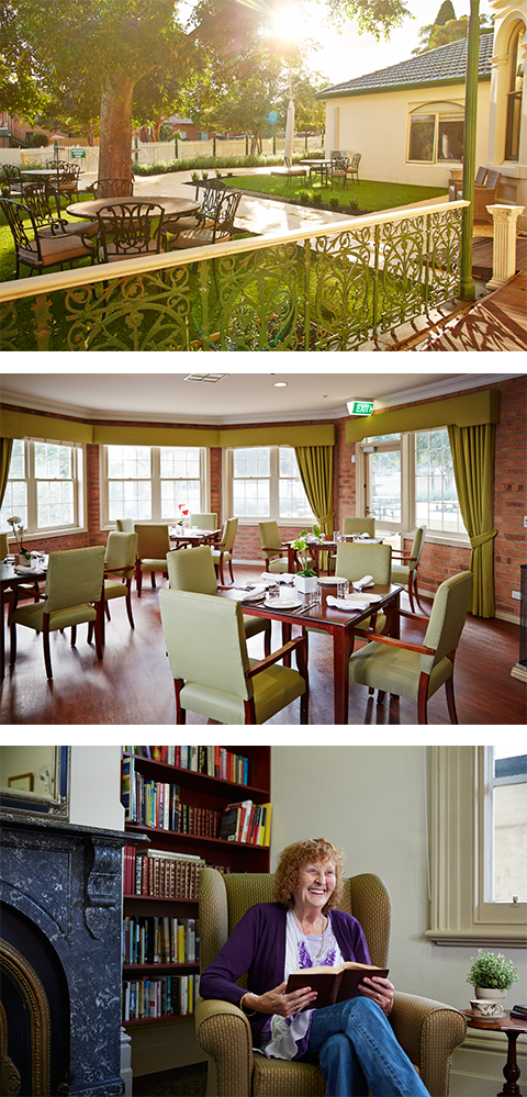 The Hilltop residence has been developed around a beautiful heritage building, but offers state-of-the-art facilities and services. Spacious lounges, activity and day rooms are available for residents. This is complemented by our heritage private dining room, Japanese courtyard and numerous other facilities.
